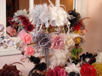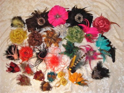 Asst. Feather & Flower Pins - Brooches, Hair Clips, etc.