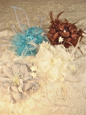 Lg.Fancy Flower Pins w/feathers & beads